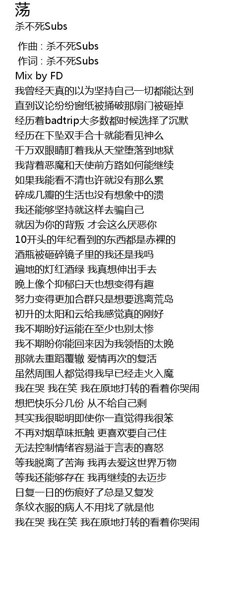 | [00:00.000] | 作曲 : 杀不死Subs |