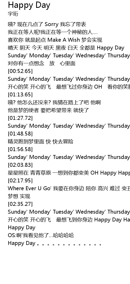 [00:25.34] qing tian yin tian jin tian ming tian hei ye bai tian quan dou shi Happy Day