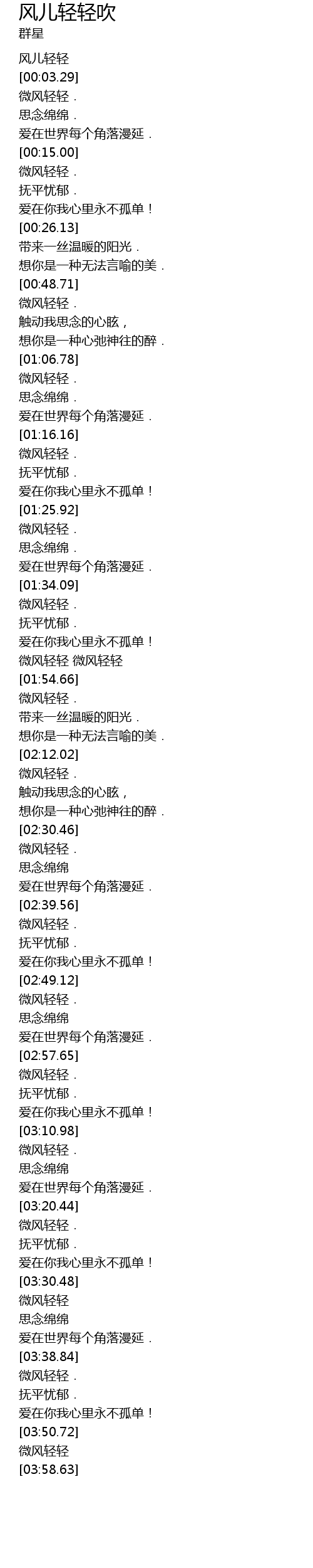 | [03:30.86] | 微风轻轻 |