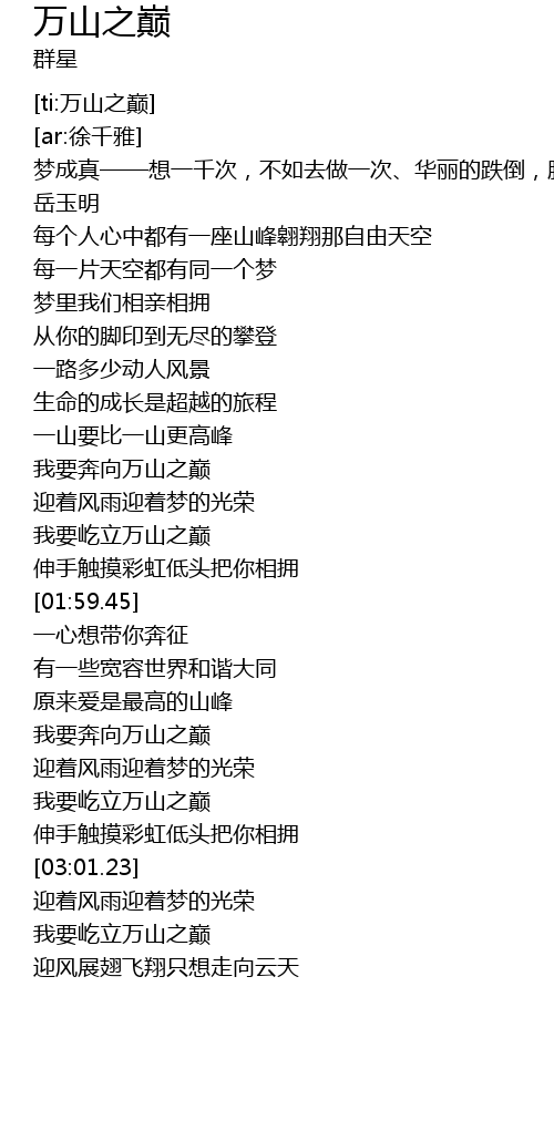 | [02:46.70] | wǒ yào yì lì wàn shān zhī diān |