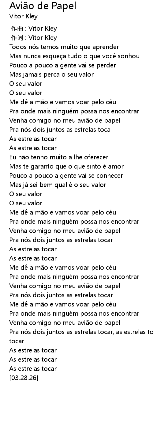 | [03:01.44] | Venha comigo no meu avi o de papel |