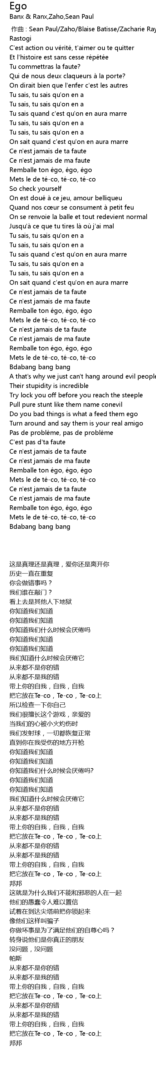 | [01:39.72] | Remballe ton e go, e go, e go |