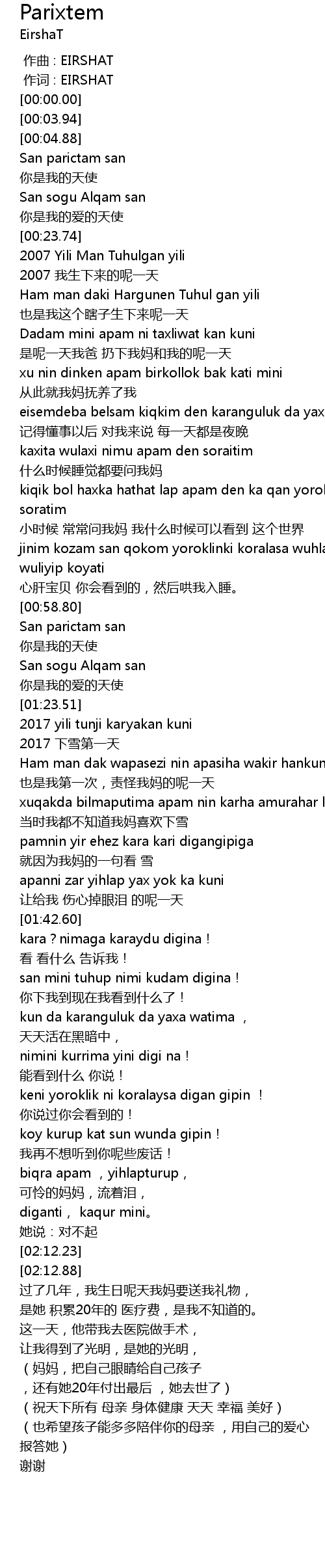 | [02:50.13] | (妈妈,把自己眼睛给自己孩子 ,还有她20年付出最后 ,她去世了) |