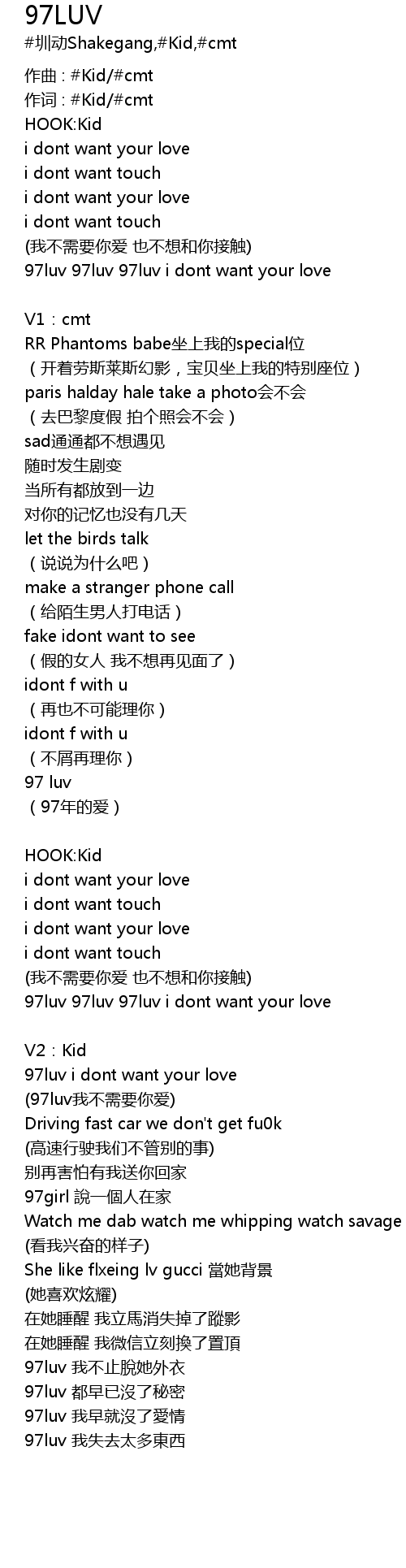 | 作词 : #Kid/#cmt | |