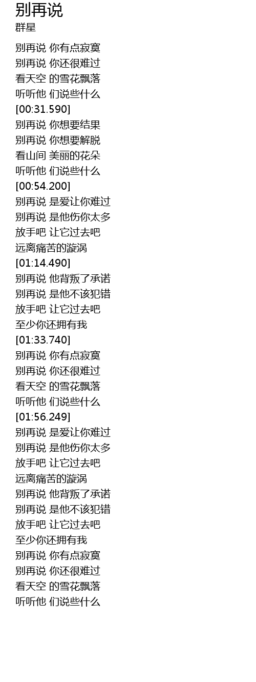 | [01:35.400] | bie zai shuo ni you dian ji mo |