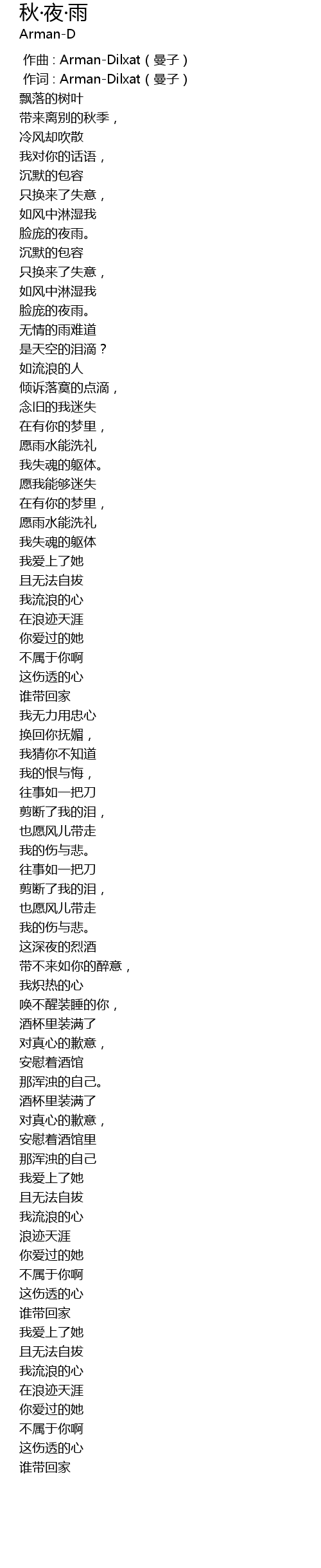| [00:01.000] | 作词 : Arman-Dilxat(曼子) |