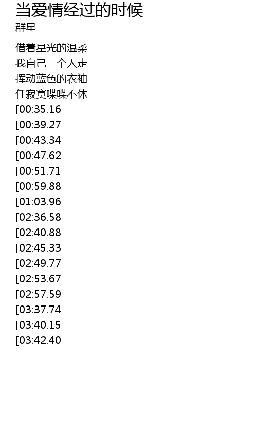 | [03:29.38][02:53.67][01:25.13] | 当爱情经过的时候 |