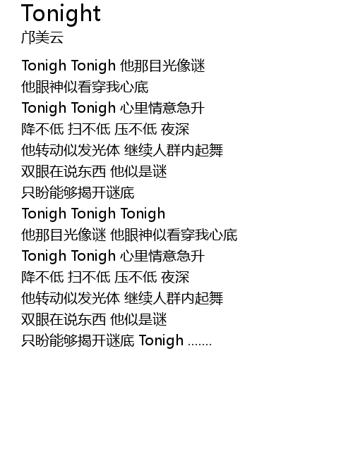 | [00:29.230] | Tonigh Tonigh 他那目光像谜 |