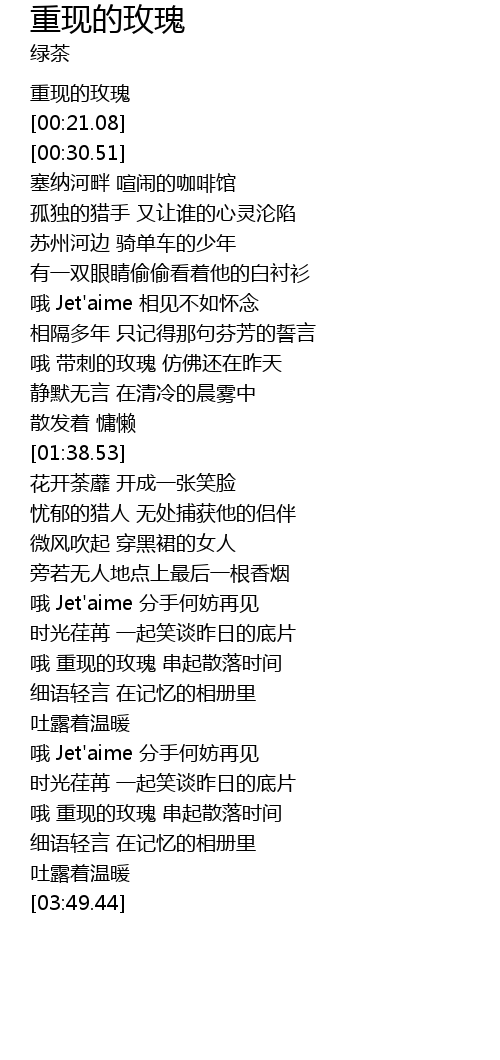 | [03:14.24] | 哦 Jet'aime 分手何妨再见 |