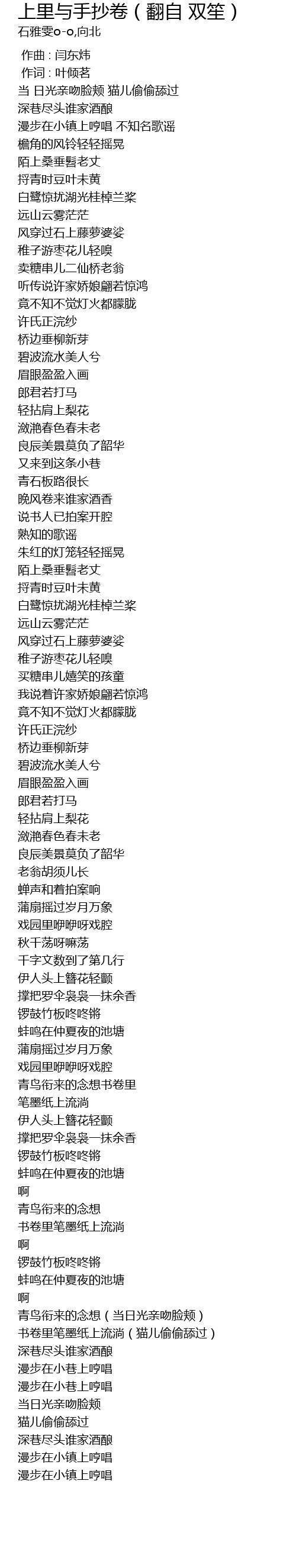 | [04:51.279] | 书卷里笔墨纸上流淌(猫儿偷偷舔过) |