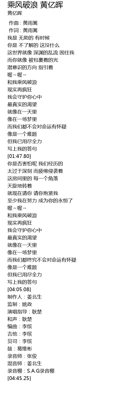 | [04:19.48] | 录音棚:S.A.G录音棚 |