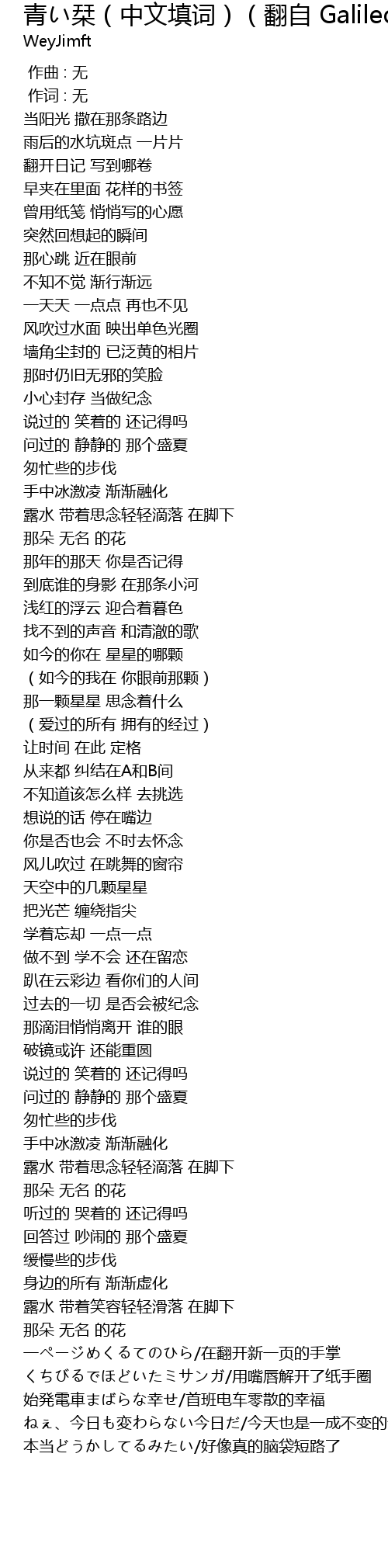 | [04:39.285] | 一ページめくるてのひら/在翻开新一页的手掌 |