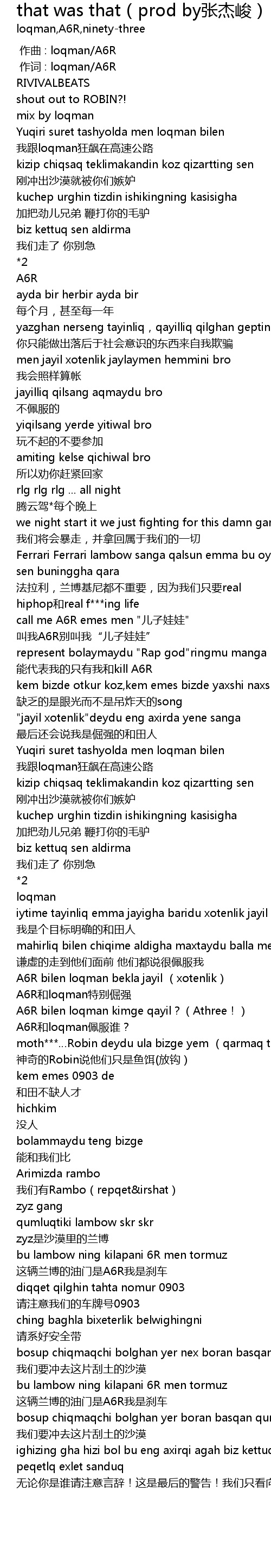 | [02:00.804] | A6R he loqman te bie jue jiang |