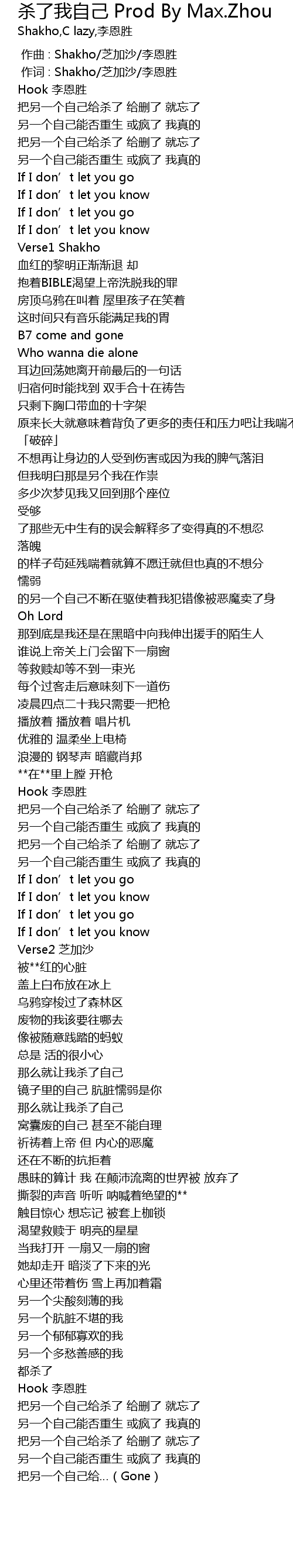 | [00:17.148] | bǎ lìng yí gè zì jǐ gěi shā le gěi shān le jiù wàng le |