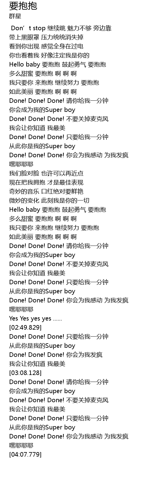 | [02:53.89] | Done! Done! Done! zhi yao gei wo yi fen zhong |