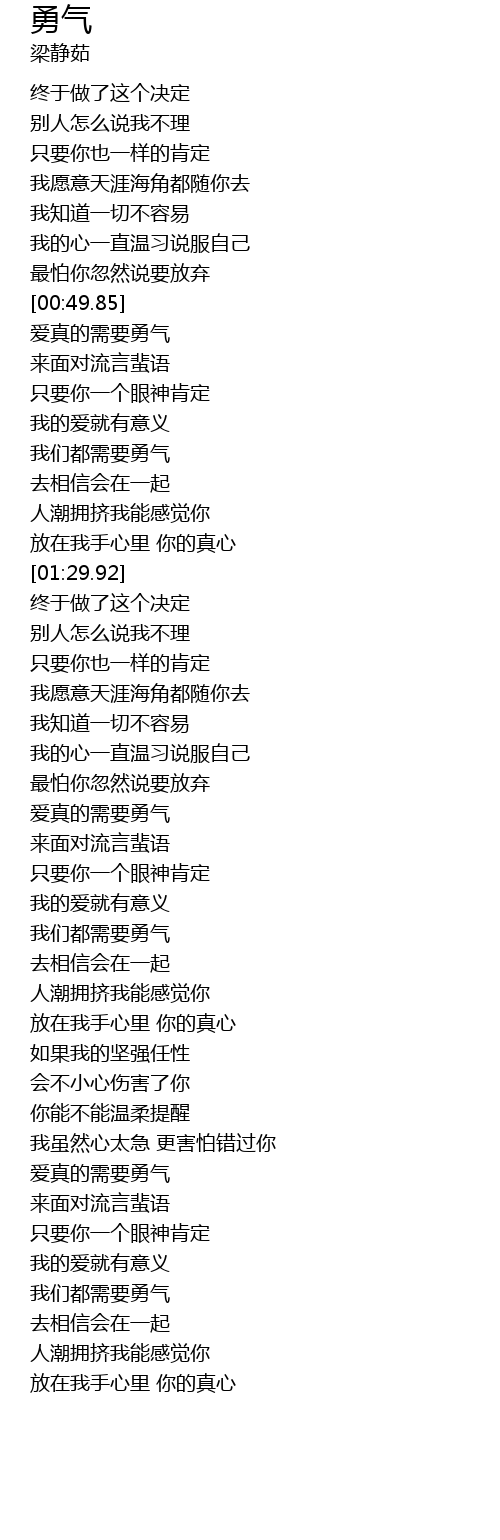 | [00:52.28] | ài zhēn de xū yào yǒng qì |