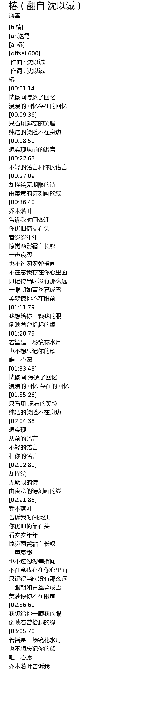 | [00:00.000] | zuò qǔ : shěn yǐ chéng |