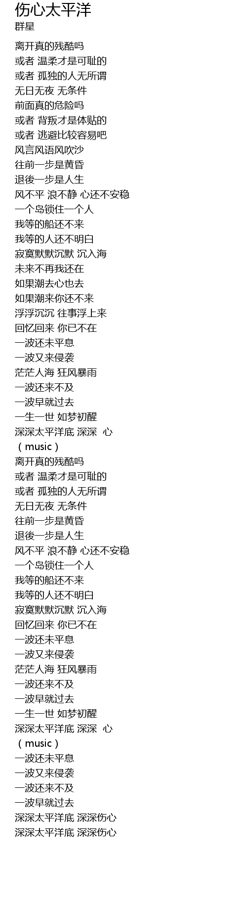 | [03:44.0] | 深深太平洋底 深深伤心 |