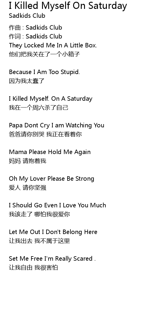 | wǒ zài yí gè zhōu liù shā le zì jǐ | |