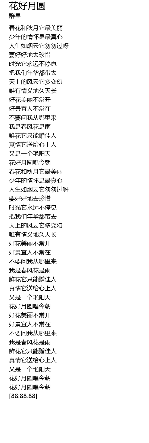 | [03:28.43] | huā hǎo yuè yuán chàng jīn zhāo |