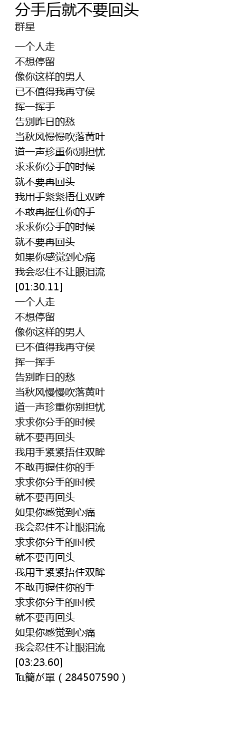 | [01:01.71] | jiù bú yào zài huí tóu |
