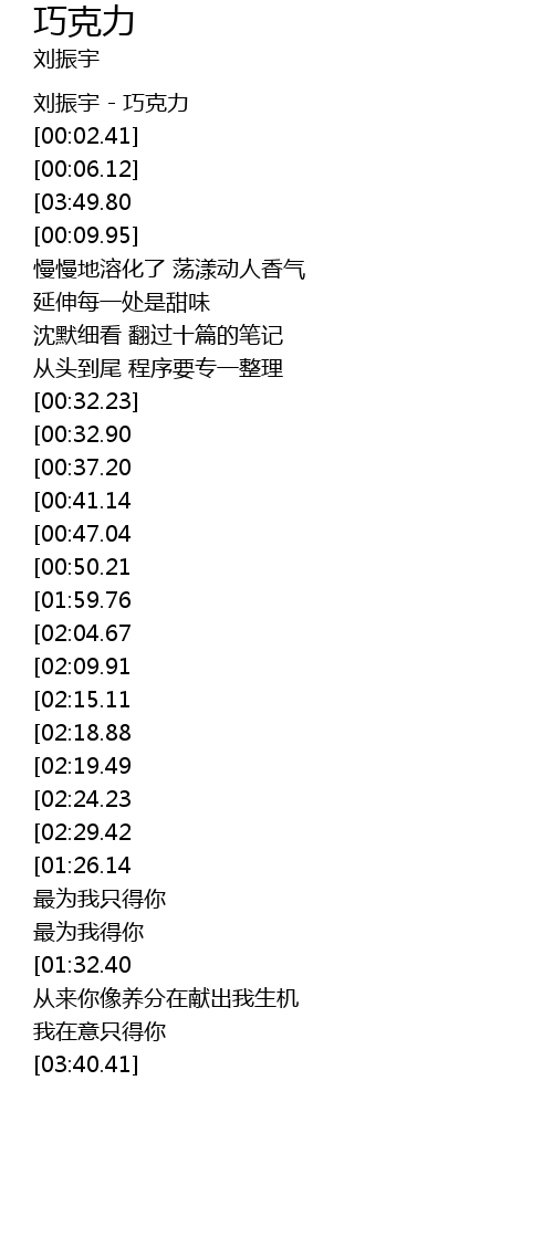 | [00:00.20] | 刘振宇 - 巧克力 |