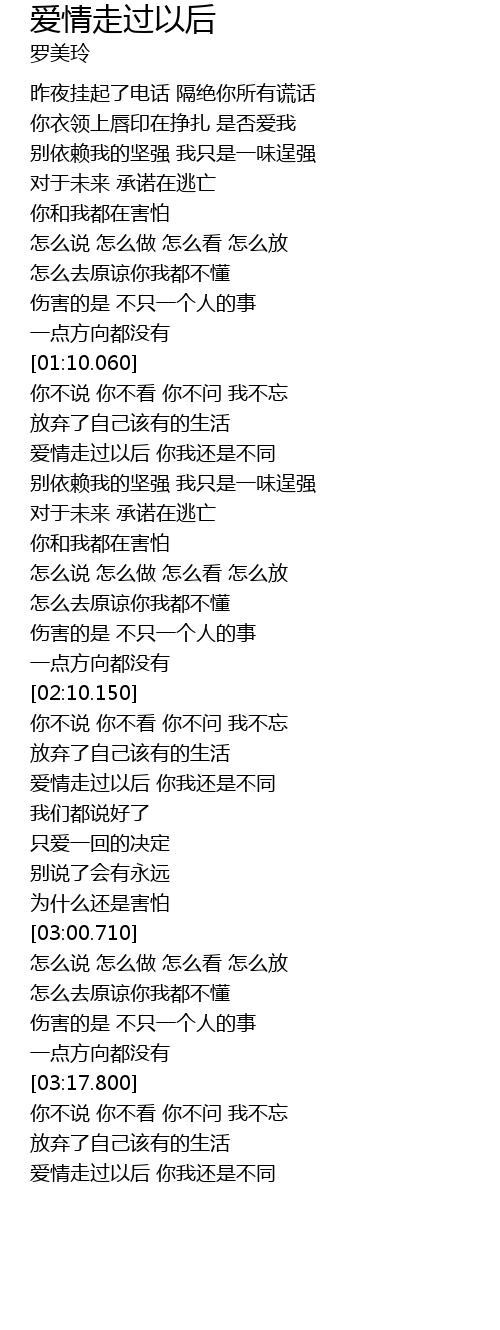 | [03:27.490] | 爱情走过以后 你我还是不同 |