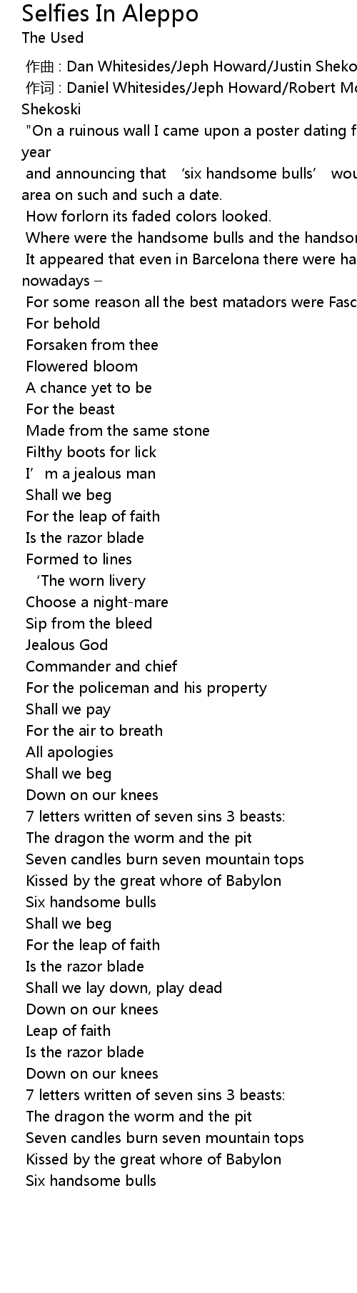| [02:35.339] | Kissed by the great whore of Babylon |