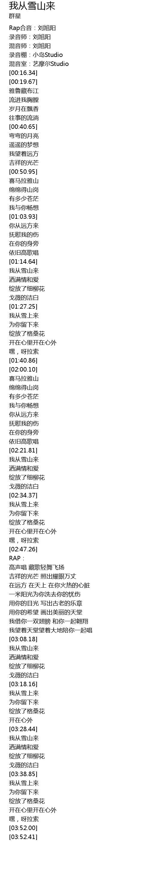 | [03:39.37] | wǒ cóng xuě shàng lái |