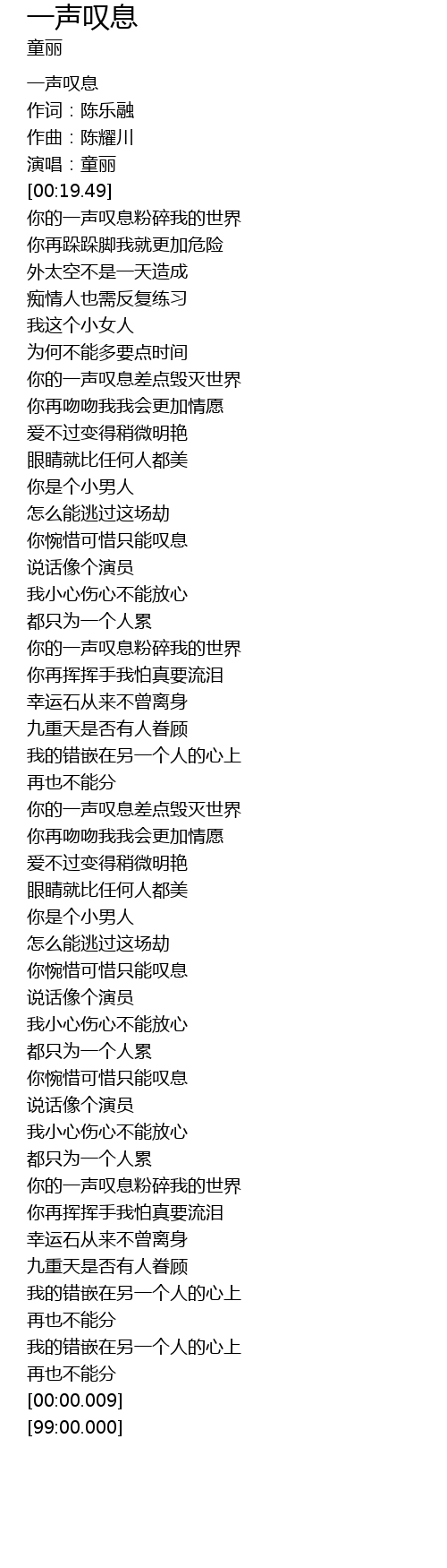 | [01:00.03] | 你的一声叹息差点毁灭世界 |