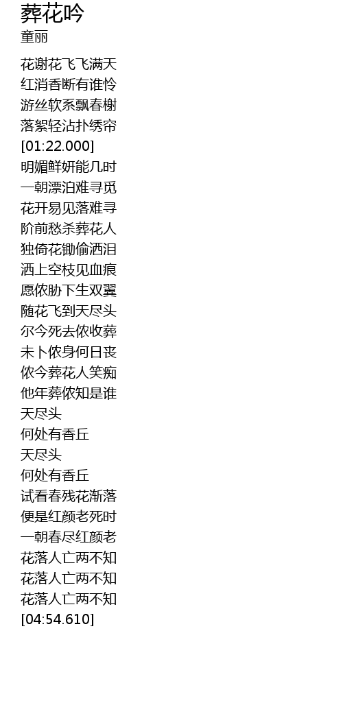 | [04:35.520] | huā luò rén wáng liǎng bù zhī |