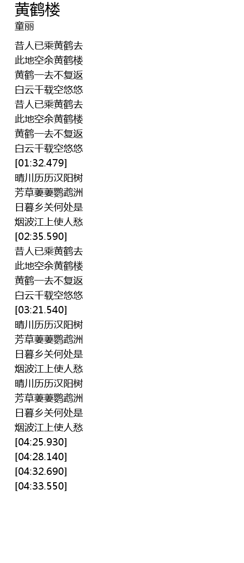 | [00:58.778] | 昔人已乘黄鹤去 |