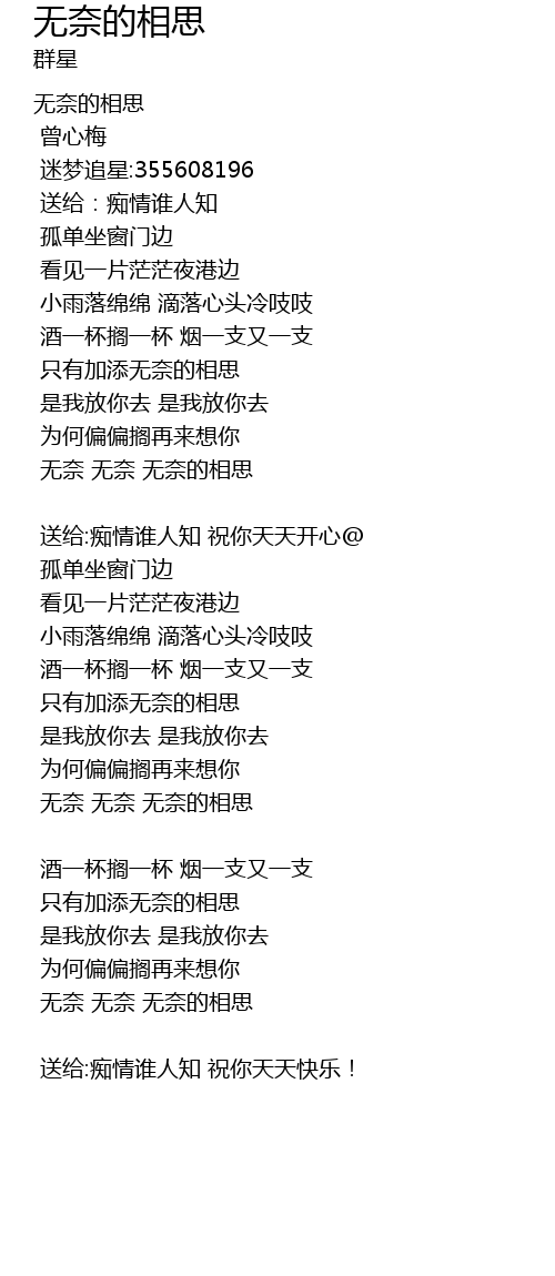 | 无奈 无奈 无奈的相思 | |