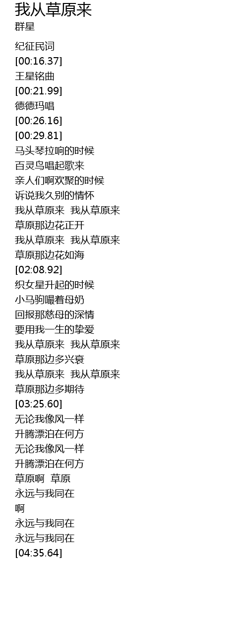 [01:36.10] wǒ cóng cǎo yuán lái wǒ cóng cǎo yuán lái