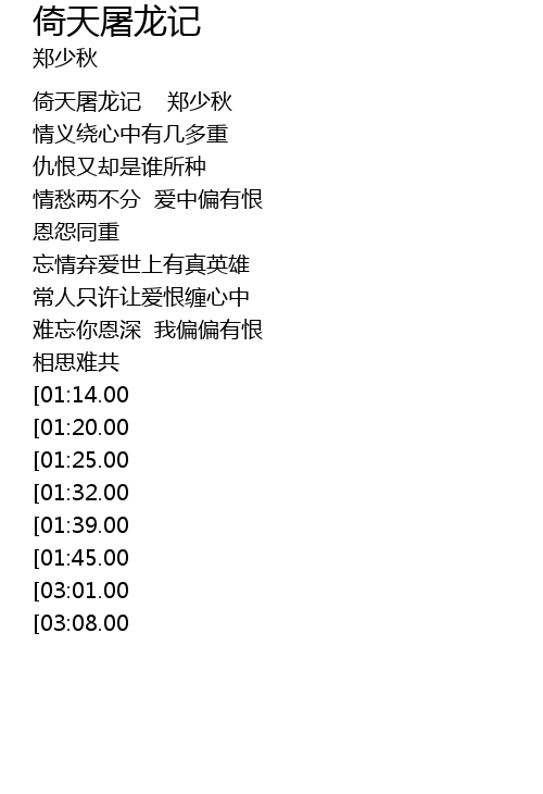 | [00:00.00] | 倚天屠龙记 郑少秋 |