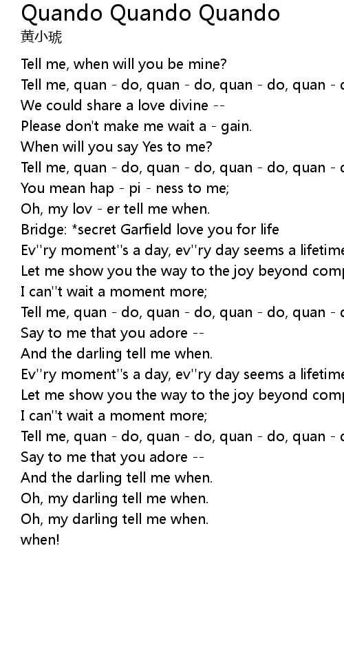 | [02:31.800] | Tell me, quan - do, quan - do, quan - do, quan - do? |