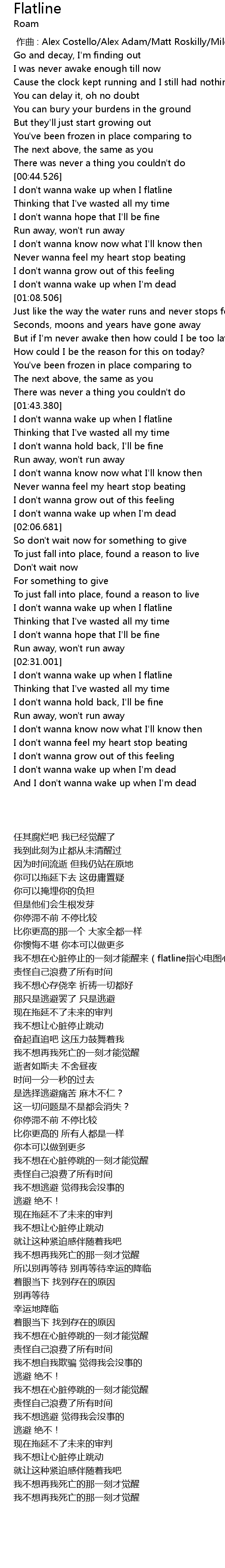 | [00:46.276] | I don' t wanna wake up when I flatline |