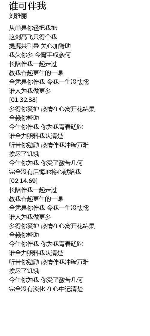 | [01:44.89] | 今生你伴我 你为我青春磋跎 |