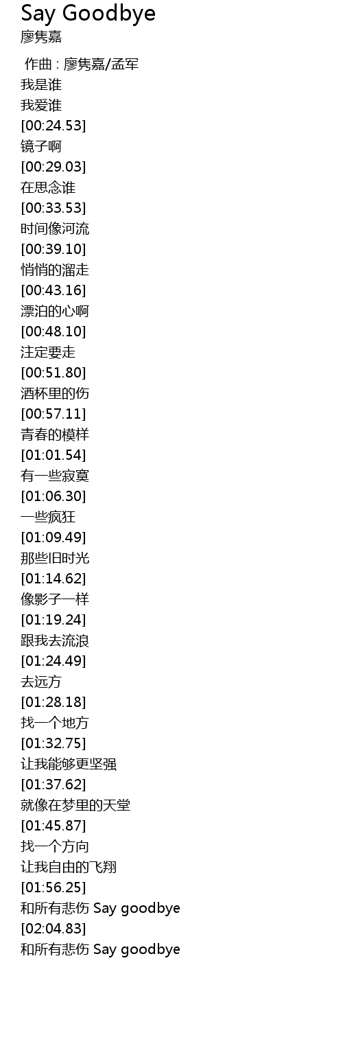 | [02:43.92] | he suo you bei shang Say goodbye |