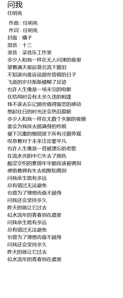 | [03:14.086] | wèn wǒ yú shēng lù yǒu duō yuǎn |