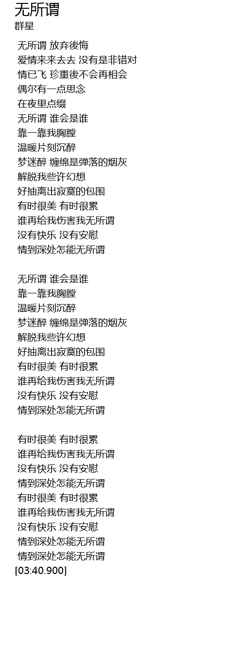 | [00:40.899] | wú suǒ wèi shuí huì shì shuí |