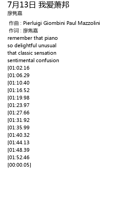 | [00:00.01] | 作词 : 廖雋嘉 |