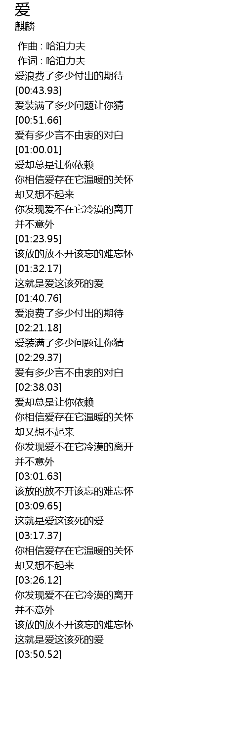 | [00:53.11] | ai you duo shao yan bu you zhong de dui bai |