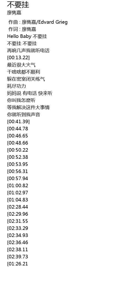 | [02:42.82][02:29.96][02:14.68][01:11.31] | 不要挂 不要挂 |