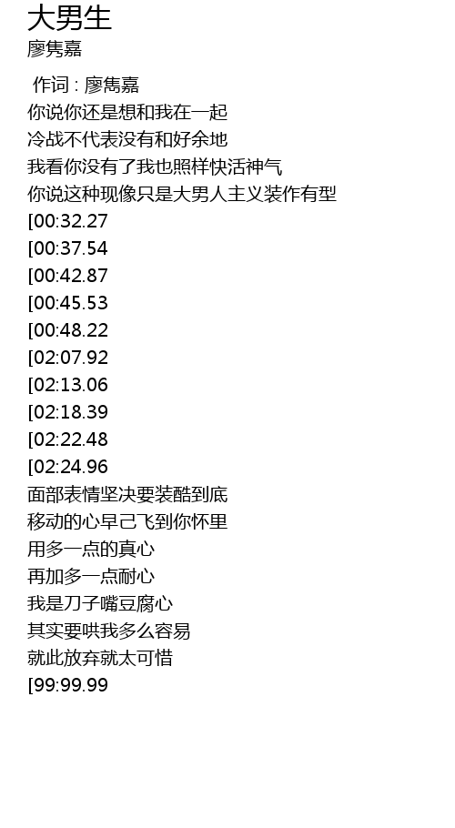 | [00:00.00] | 作词 : 廖雋嘉 |