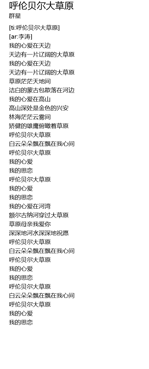 [01:33.689] hū lún bèi ěr dà cǎo yuán