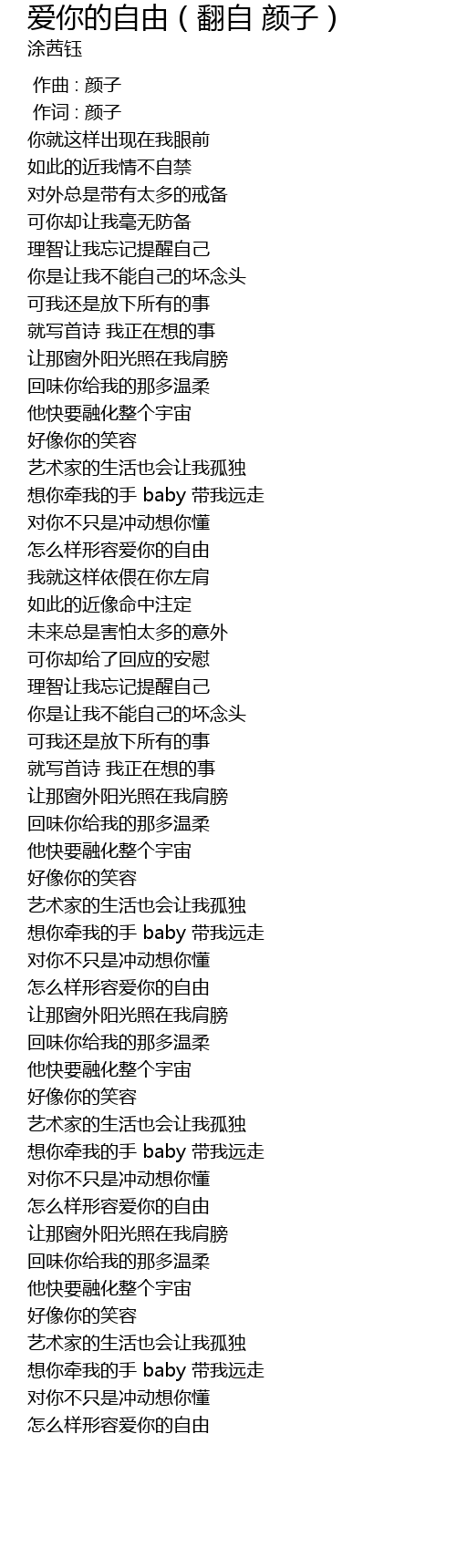 | [03:58.845] | 怎么样形容爱你的自由 |