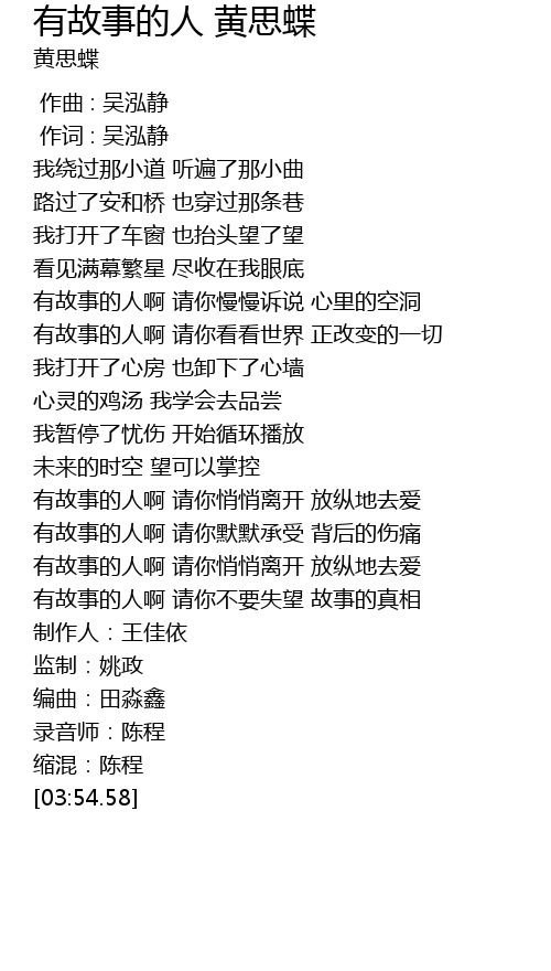 | Song | 有故事的人 黄思蝶 |