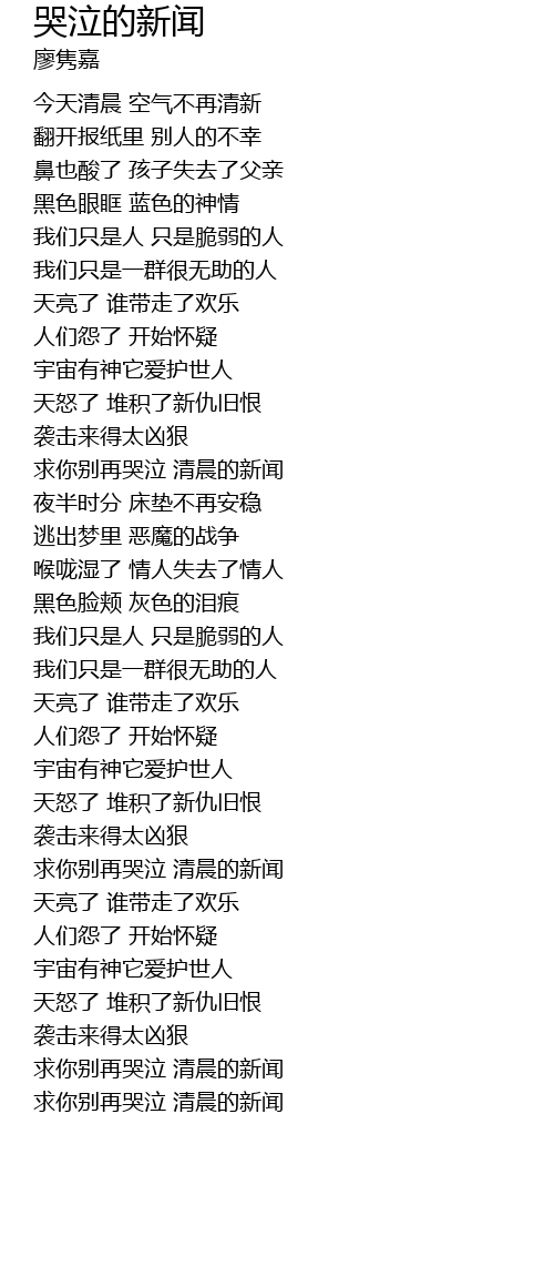 | [04:39.99] | 求你别再哭泣 清晨的新闻 |