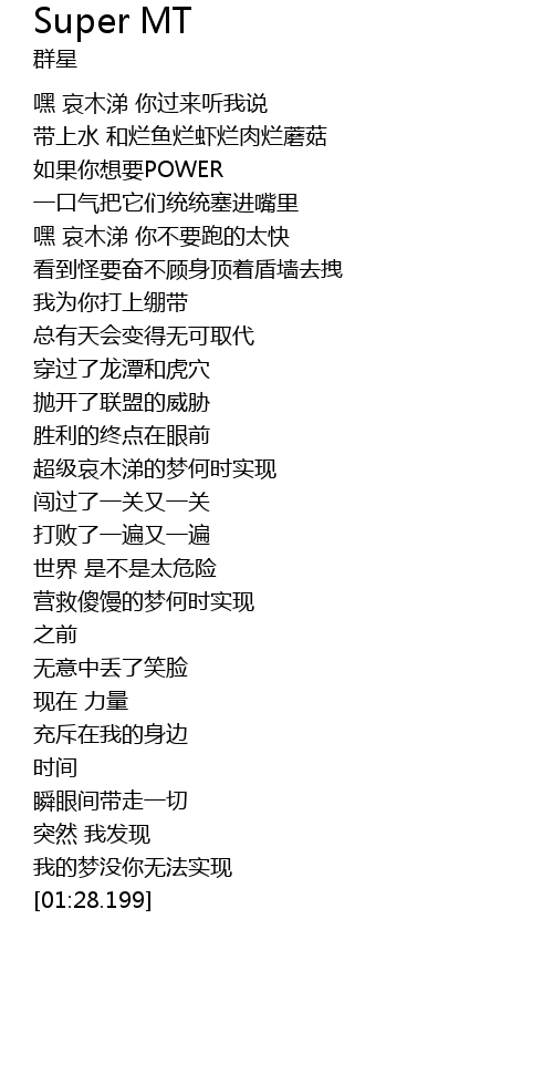| [00:48.790] | 超级哀木涕的梦何时实现 |